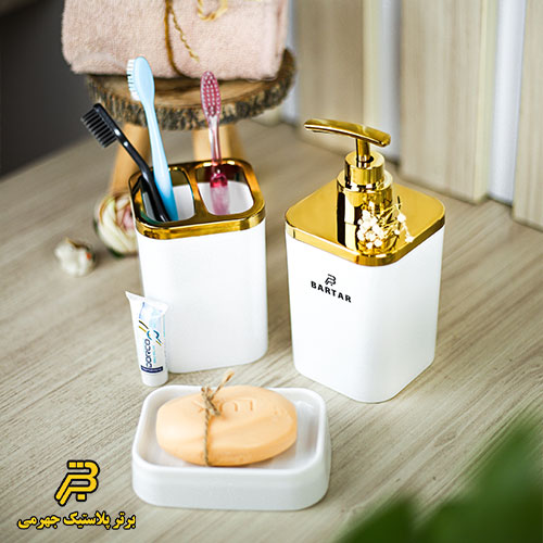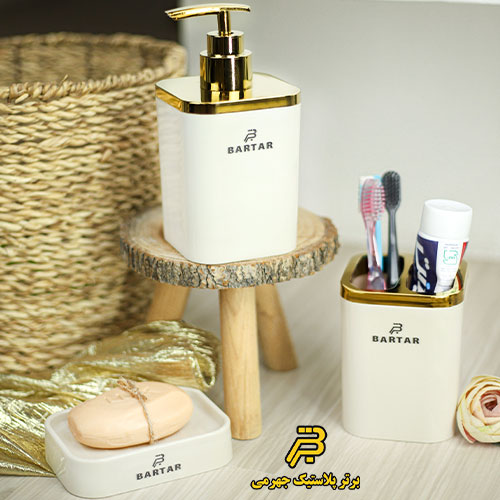 رنگ طلایی همواره نمادی از شکوه و تجمل بوده است. در این ست، جزئیات طلایی جلوه‌ای چشمگیر ایجاد می‌کند و فضای سرویس بهداشتی را به محیطی لوکس و متفاوت تبدیل می‌نماید.